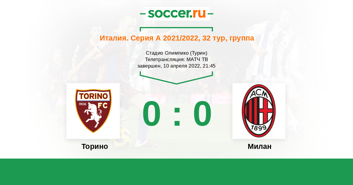 Турин, Стадио Олимпико, зрителей: 23472 Телетрансляция: МАТЧ ТВ