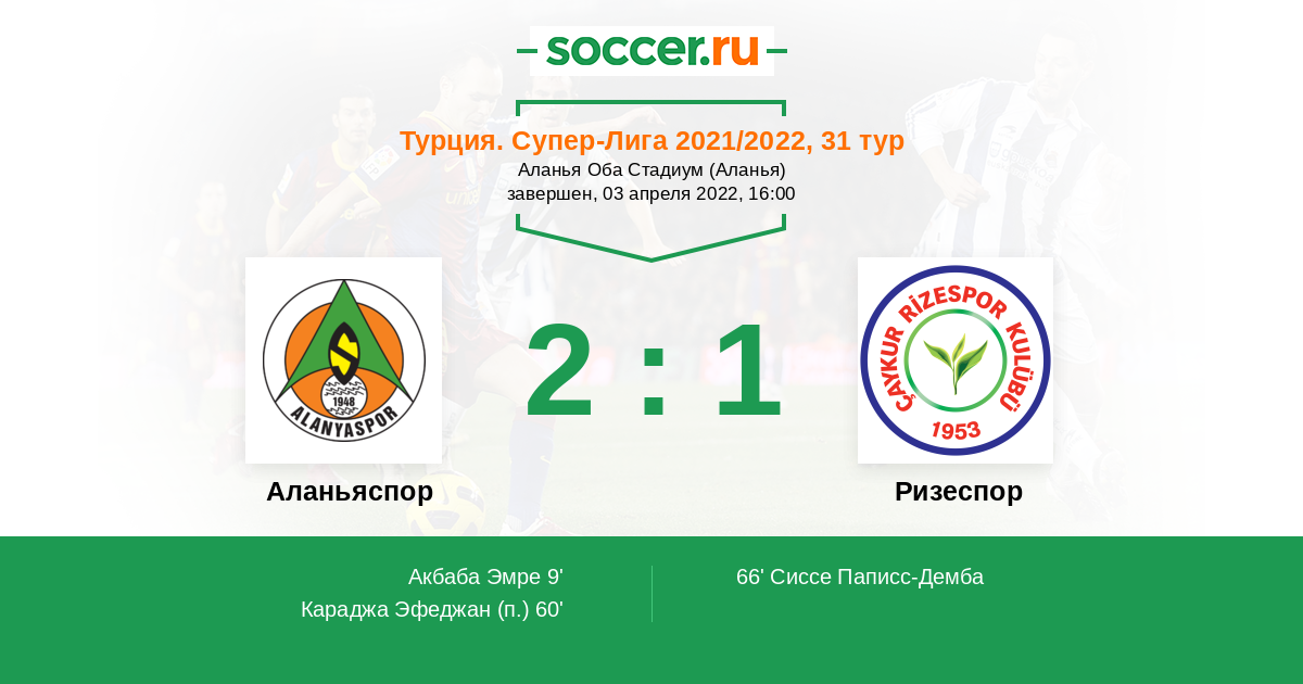 | Аланьяспор | 20:18 | 15:8 | 5:10 |
