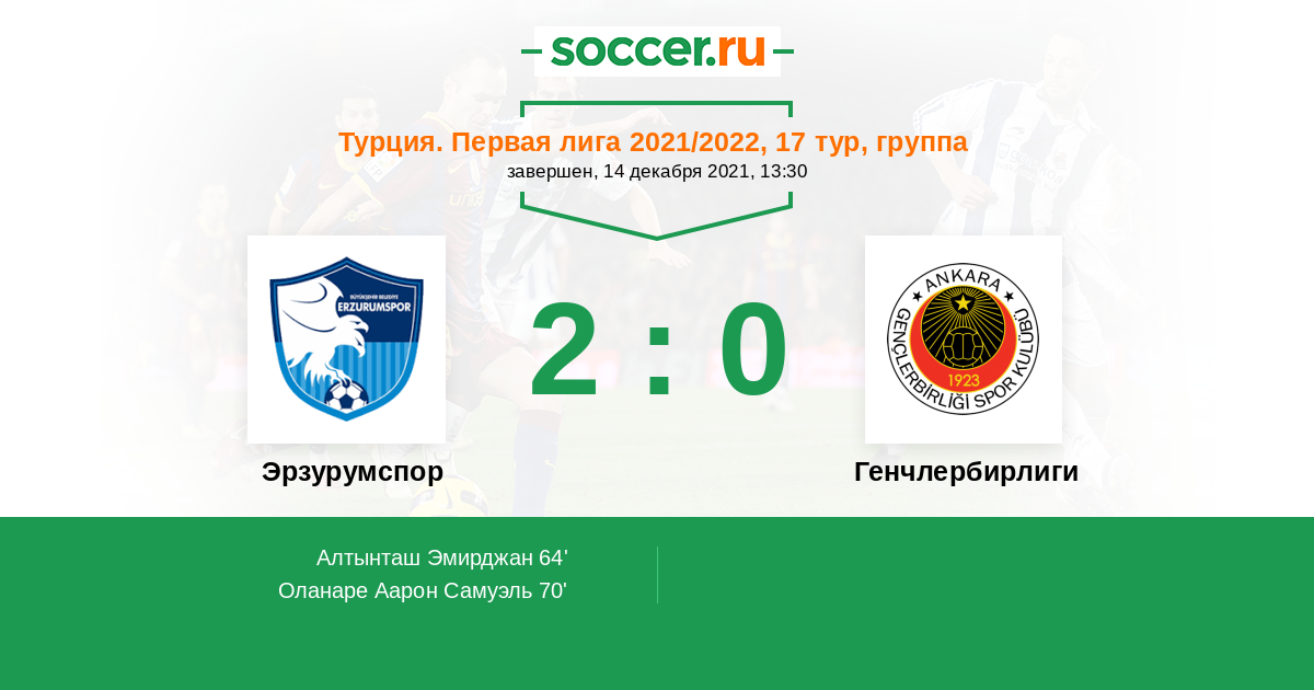 | Эрзурумспор | 6:12 | 2:5 | 4:7 |
