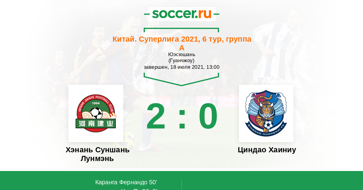 | Хэнань Суншань Лунмэнь | 1:0 | 0:0 | 1:0 |