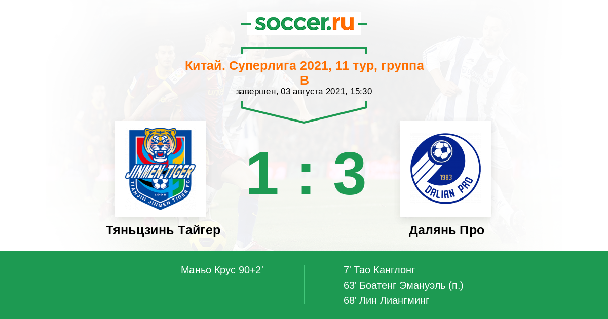 | Тяньцзинь Тайгер | Далянь Про | |