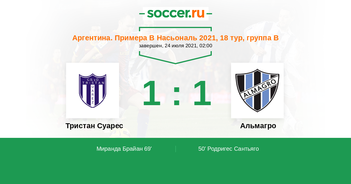 | Аргентина. Примера Б Насьональ | 4 | 3 | 1 | 0 |