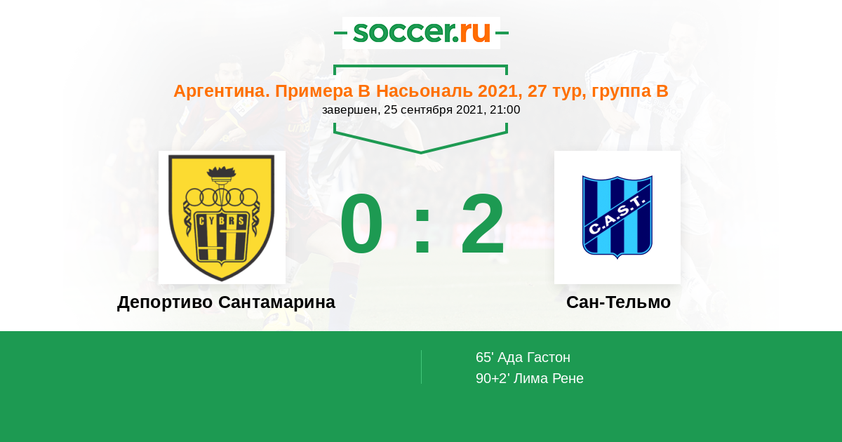 | Депортиво Сантамарина | Сан-Тельмо | |