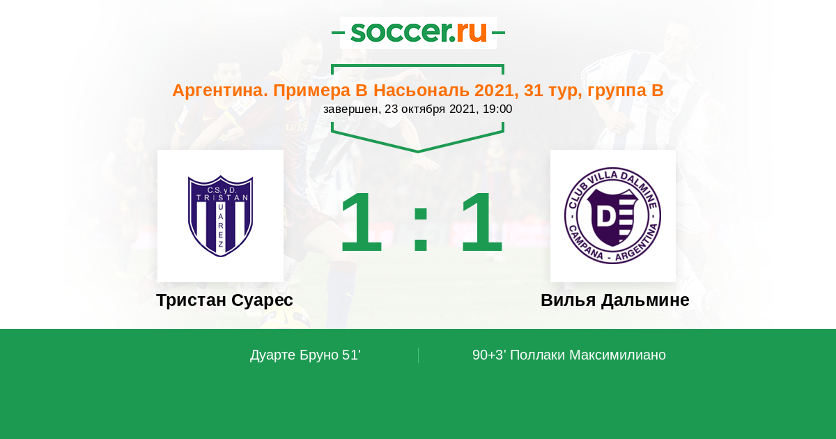 | Аргентина. Примера Б Насьональ | 4 | 0 | 1 | 3 |