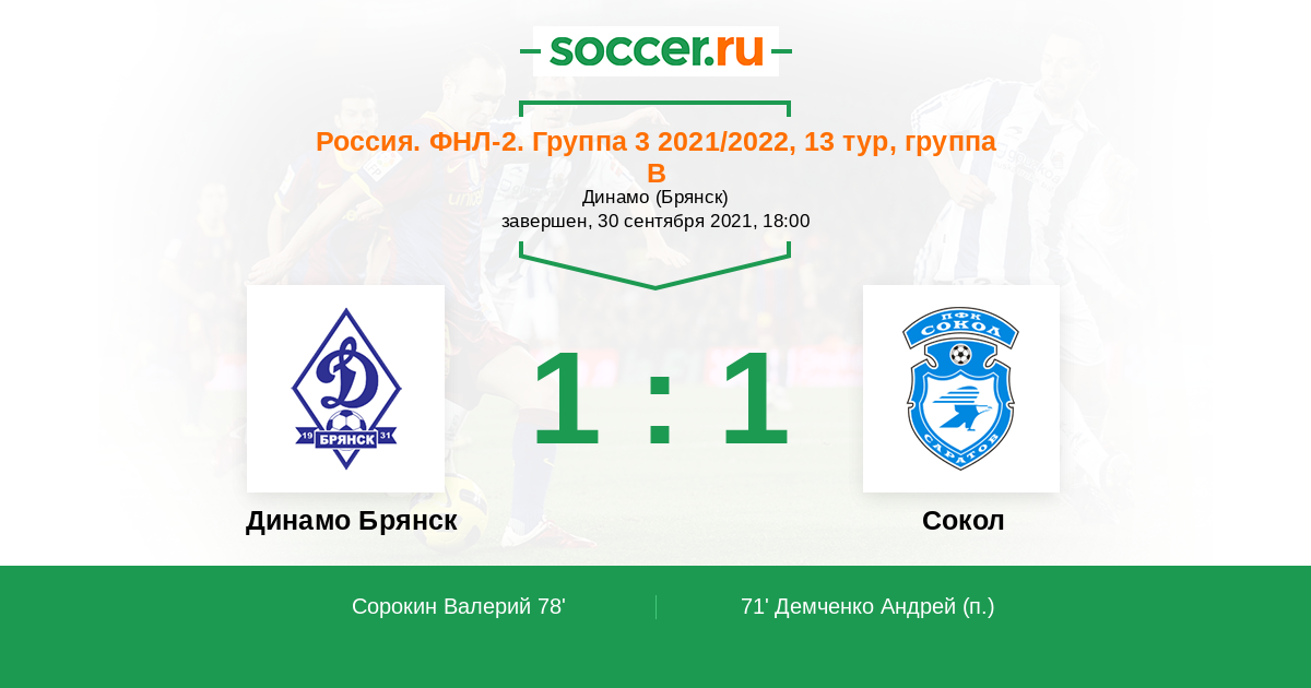 | Динамо Брянск | 20:20 | 13:8 | 7:12 |