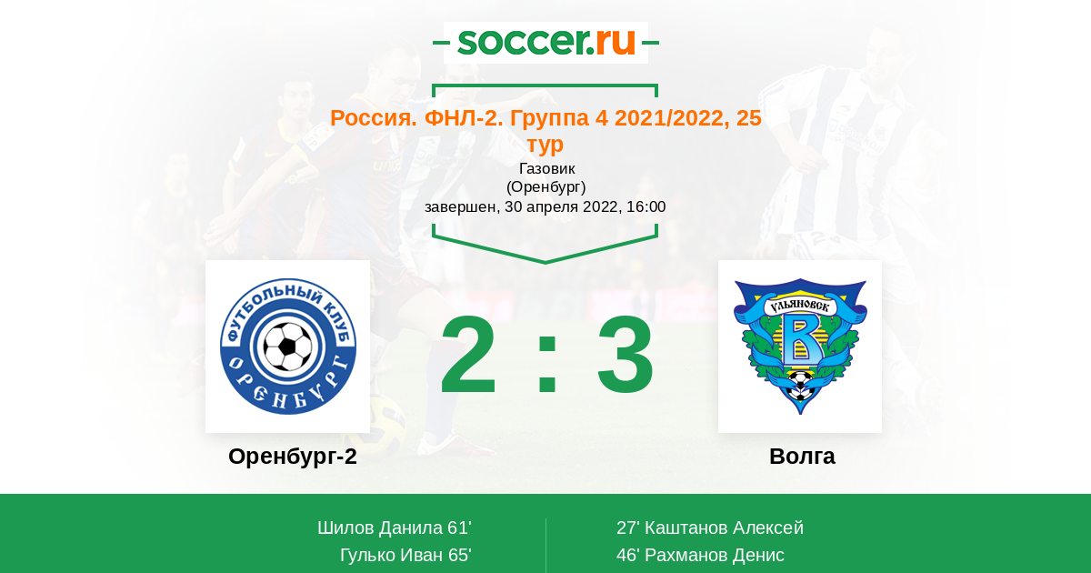 | Оренбург-2 | 4:14 | 1:4 | 3:10 |