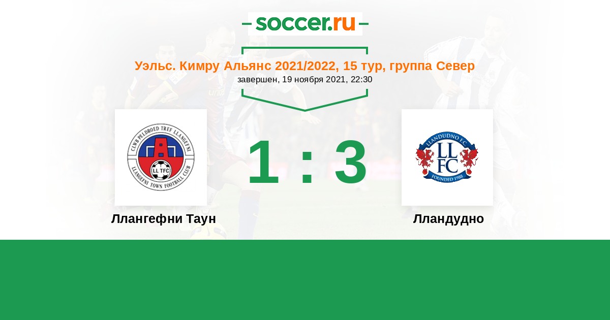 | Ллангефни Таун | 23:31 | 11:17 | 12:14 |