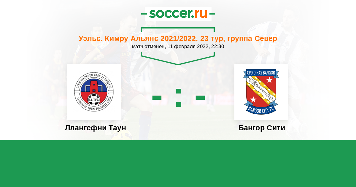 | Ллангефни Таун | 3:7 | 0:2 | 3:5 |