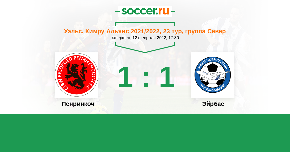 | Пенринкоч | 1:20 | 1:9 | 0:11 |