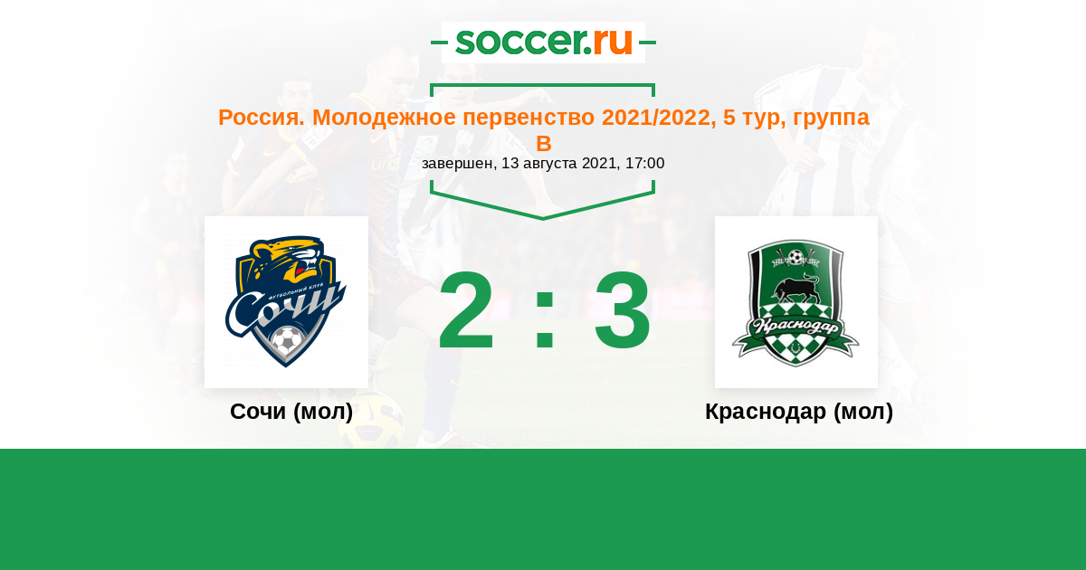 | Краснодар (мол) | 21:18 | 14:8 | 7:10 |
