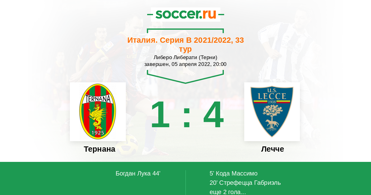| Лечче | 13:9 | 6:5 | 7:4 |