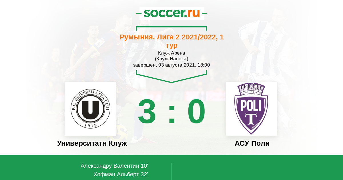 | Университатя Клуж | 1:2 | 1:1 | 0:1 |