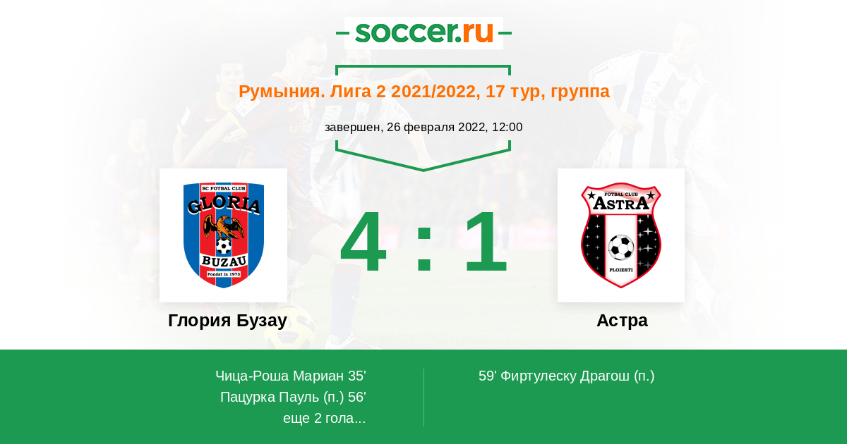 | Глория Бузау | 5:0 | 5:0 | 0:0 |