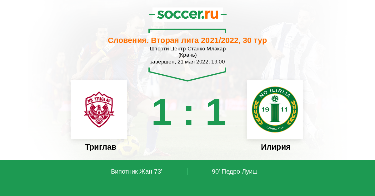 | Триглав | 9:10 | 1:2 | 8:8 |