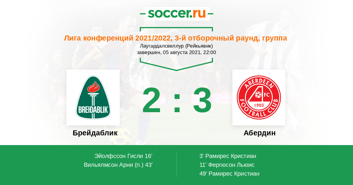 | Абердин | 2:1 | 2:1 | 0:0 |