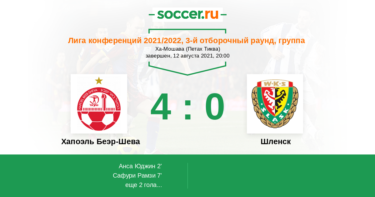 | Хапоэль Беэр-Шева | 4:2 | 0:0 | 4:2 |