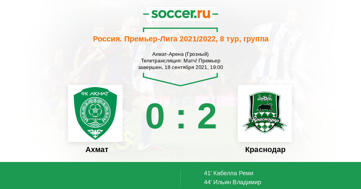 Грозный, Ахмат-Арена, зрителей: 7399 Телетрансляция: Матч! Премьер