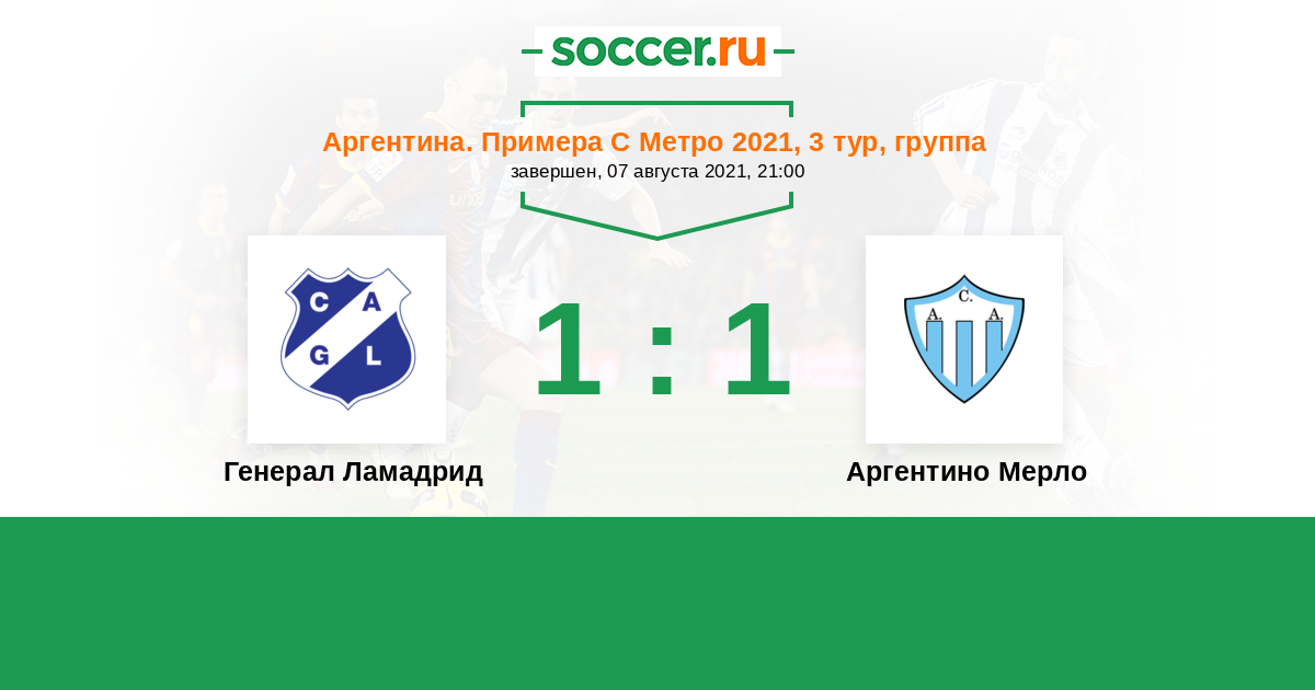 | Аргентина. Примера С Метро | 21 | 9 | 6 | 6 |