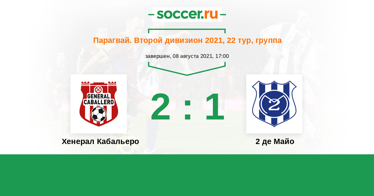 | Хенерал Кабальеро | 20:18 | 10:6 | 10:12 |
