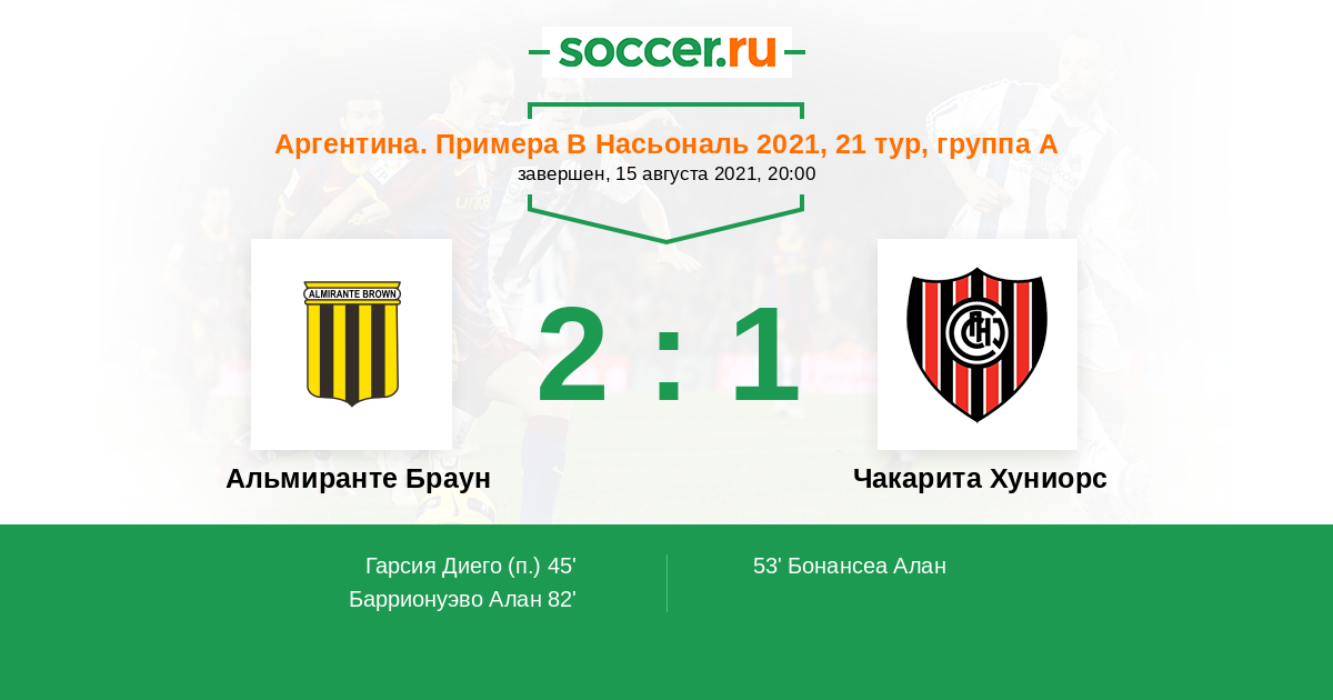 | Альмиранте Браун | Чакарита Хуниорс | |