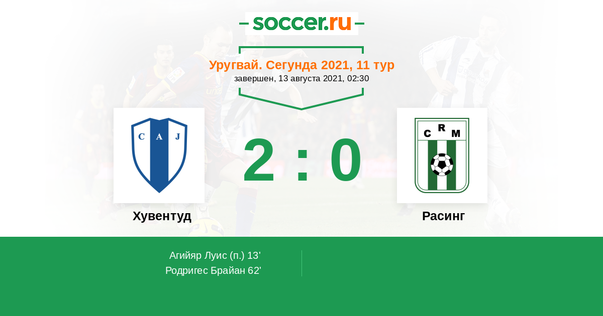 | Расинг | 21:17 | 14:7 | 7:10 |