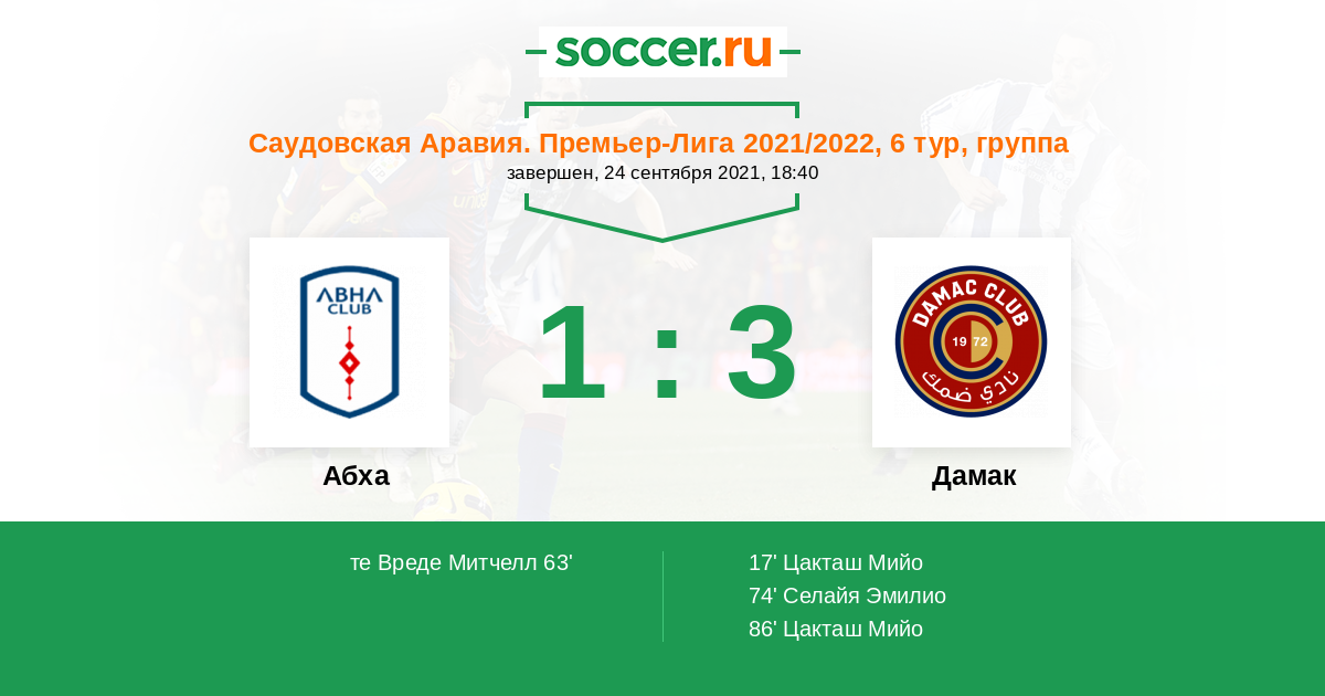 | Дамак | 35:39 | 19:18 | 16:21 |