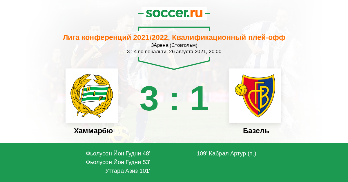 | Хаммарбю | 1:3 | 0:0 | 1:3 |