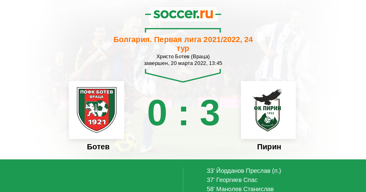 | Ботев | 13:25 | 3:8 | 10:17 |