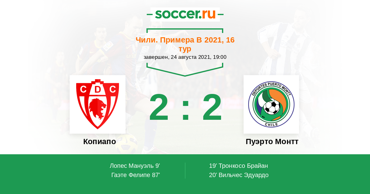 | Пуэрто Монтт | 34:27 | 21:9 | 13:18 |