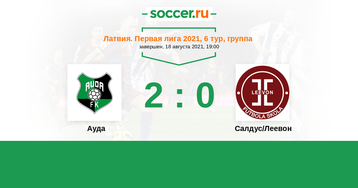 | Салдус/Леевон | 1:2 | 0:0 | 1:2 |