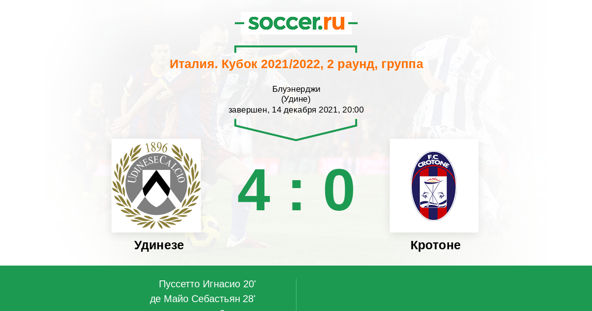 Почему такой прогноз? Фаворит в этой паре, на мой взгляд, очевиден. Удинезе не против поиграть в кубке, авось удастся зайти далеко. Кротоне пытается спастись от вылета из Серии В и им сейчас точно не до кубка.