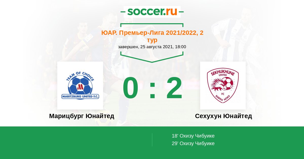 | Марицбург Юнайтед | Сехухун Юнайтед | |