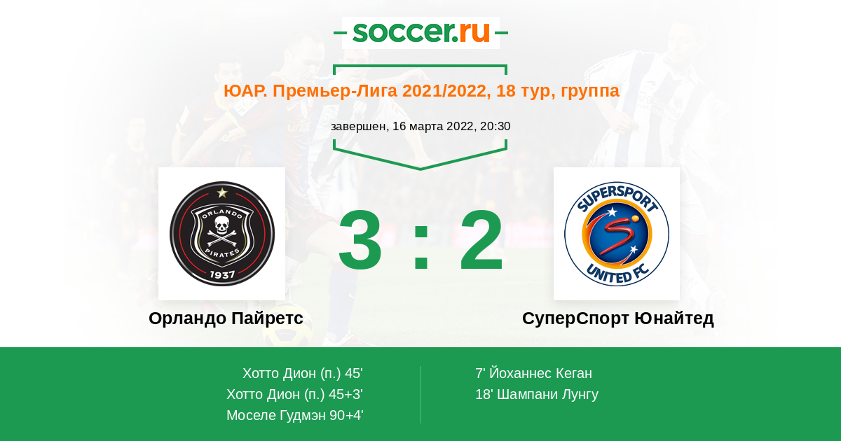 | Орландо Пайретс | СуперСпорт Юнайтед | |