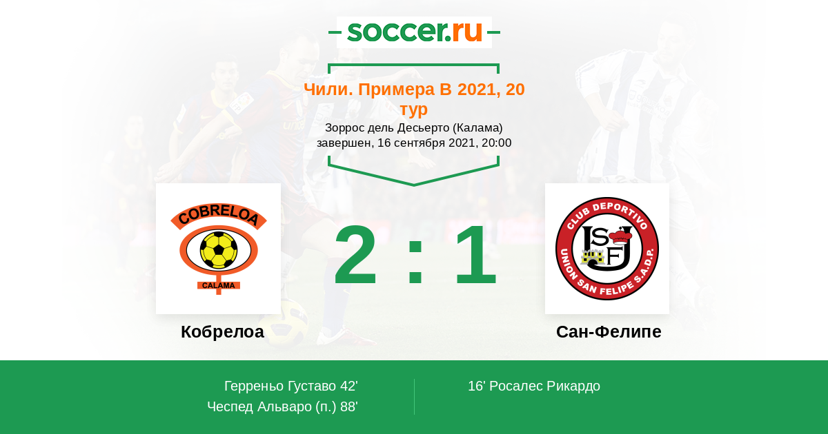 | Чили. Примера В | 18 | 8 | 4 | 6 |
