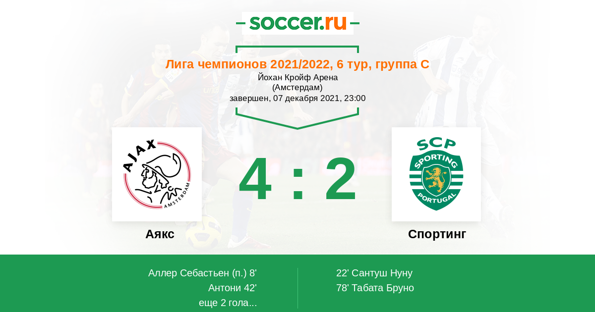 Турнирная ситуация делает матч, практически товарищеским - результат не будет давлеть ни над Аяксом, ни над Спортингом. При этом обе команды любят и умеют атаковать. Предположу, что игра будет весёлой.