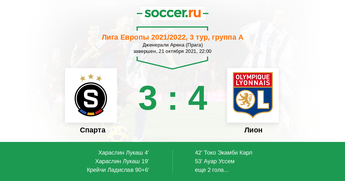 Противостояние двух клубов очень интересное. "Спарта" не та команда, которая будет закрываться или отсиживаться в обороне. Хороши чехи в прессинге и неплохи в обороне. "Лион" хоть и фаворит встречи, все таки состав французов и