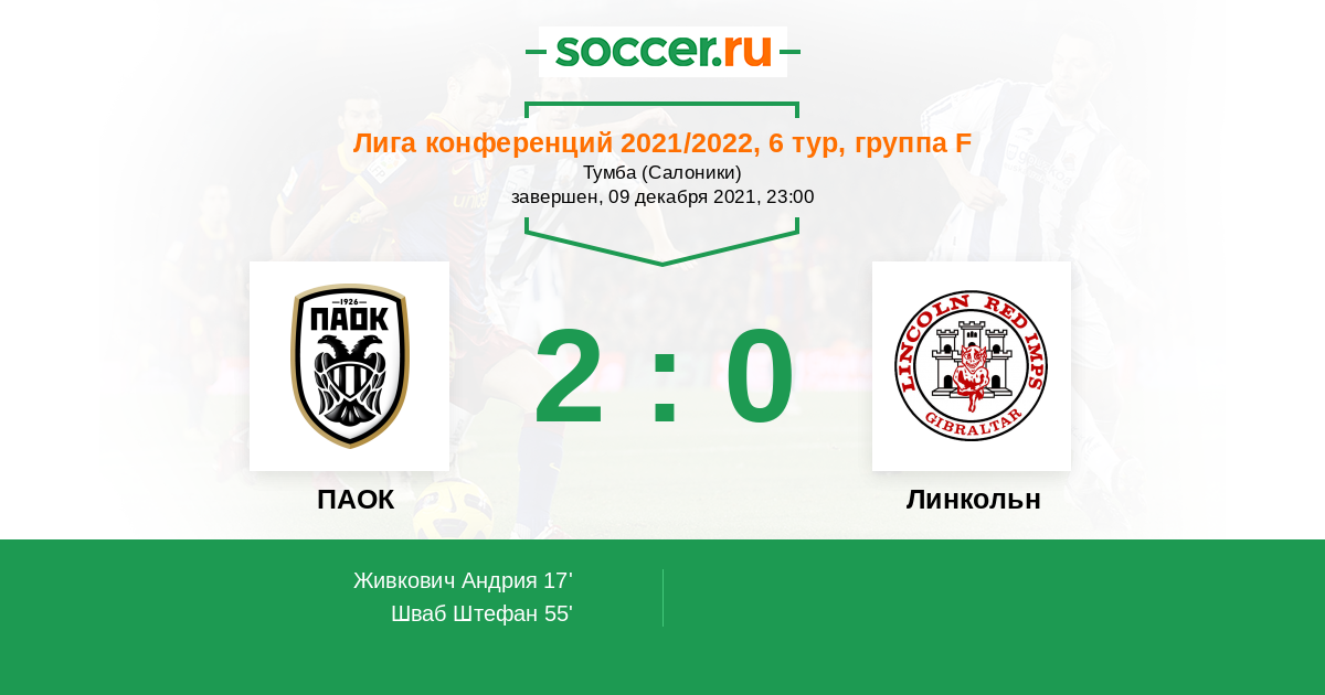 | Линкольн | 0:2 | 0:2 | 0:0 |