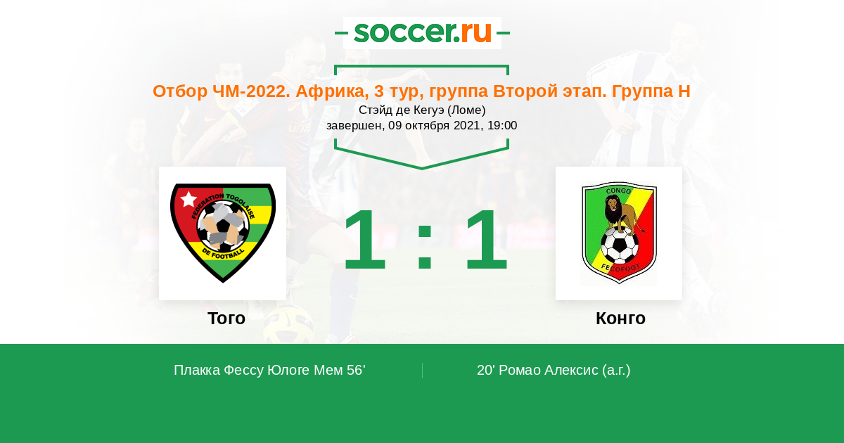 | Того | 6:3 | 1:0 | 5:3 |