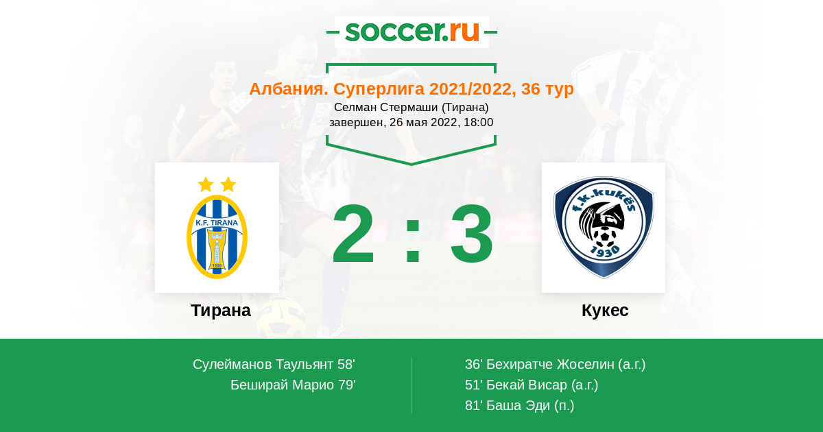 | Тирана | 54:56 | 34:25 | 20:31 |