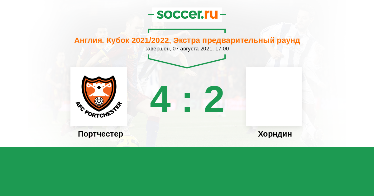 | Портчестер | 5:0 | 0:0 | 5:0 |
