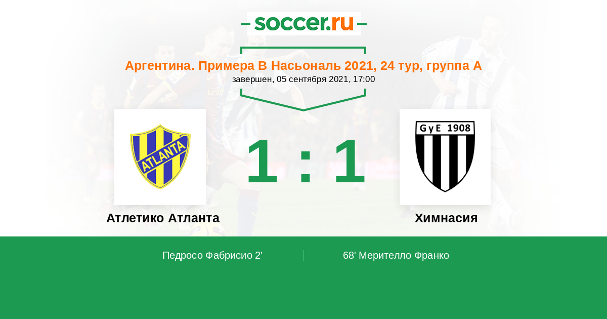 | Атлетико Атланта | Химнасия | |
