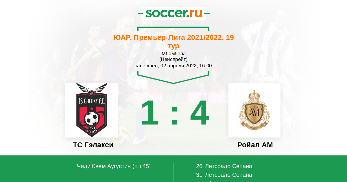 | ЮАР. Премьер-Лига | 5 | 1 | 2 | 2 |