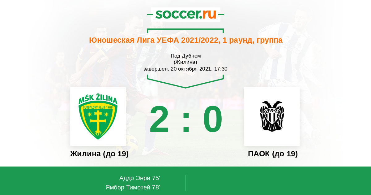 | Жилина (до 19) | ПАОК (до 19) | |