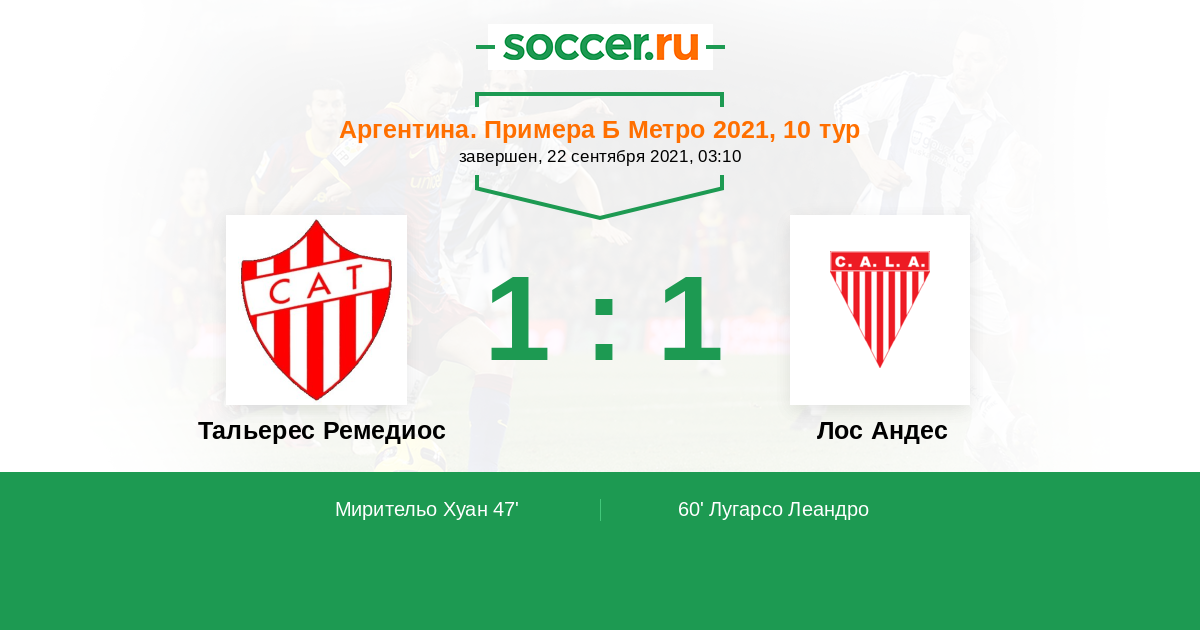 | Аргентина. Примера Б Метро | 11 | 3 | 2 | 6 |