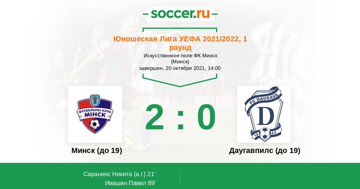 | Минск (до 19) | Даугавпилс (до 19) | |