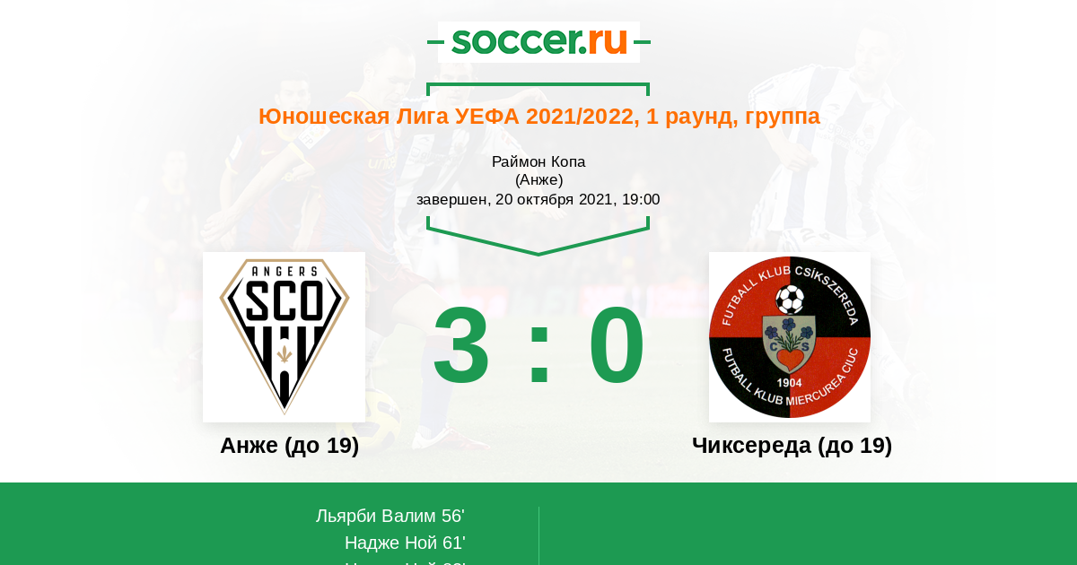| Анже (до 19) | Чиксереда (до 19) | |