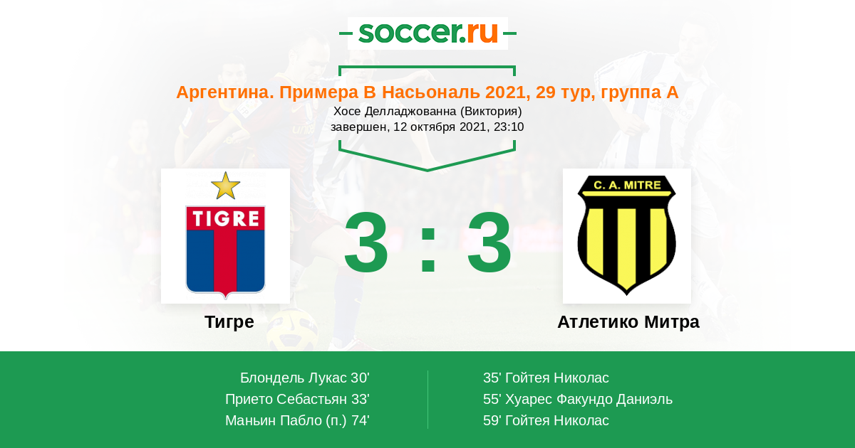 | Тигре | 2:4 | 0:0 | 2:4 |