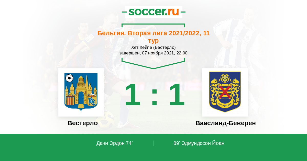 | Вестерло | 18:16 | 5:3 | 13:13 |