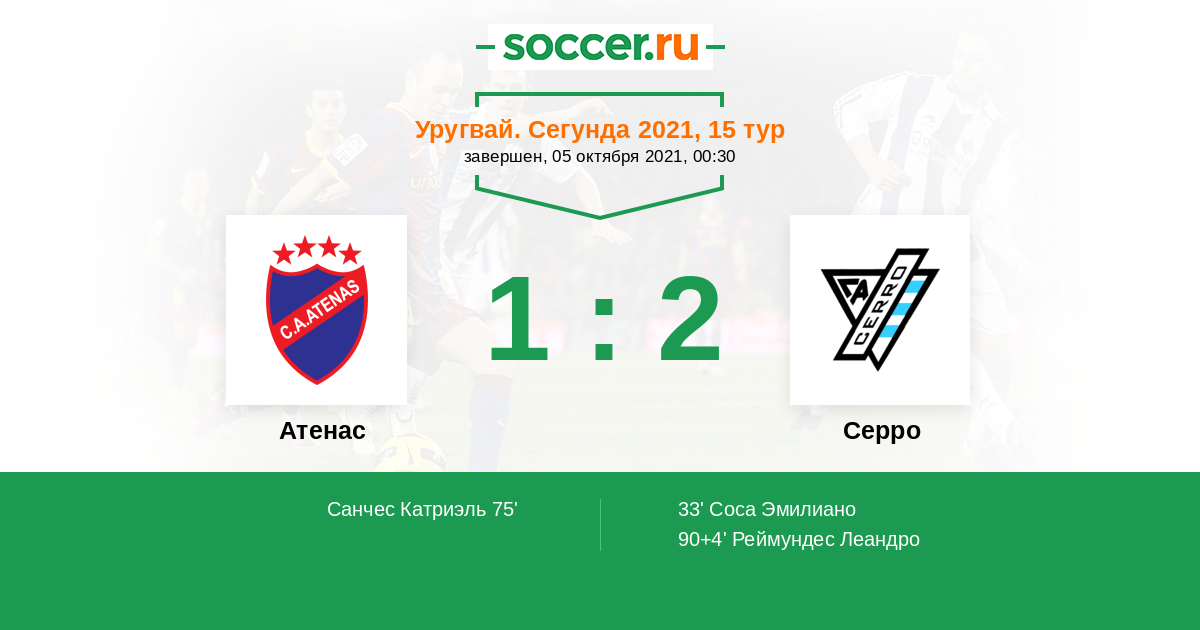 | Уругвай. Примера A | 6 | 1 | 5 | 0 |
