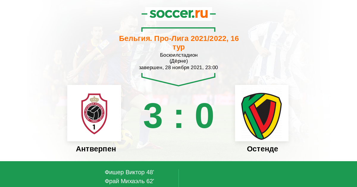 | Антверпен | 67:43 | 37:22 | 30:21 |